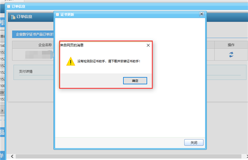 3、在彈出的證書更新頁面會提示要安裝證書助手,點擊確定下載證書助手,下載完畢之后安裝證書助手,安裝完畢后刷新瀏覽器即可加載相應(yīng)的控件