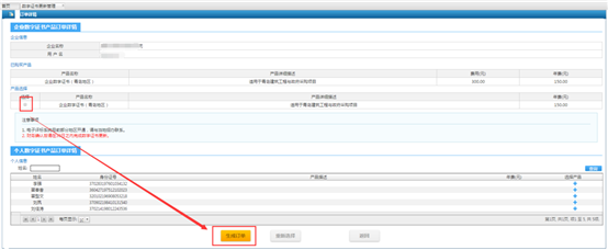 在產(chǎn)品選擇列表中,選擇需要更新的產(chǎn)品,青島公共資源交易信息平臺的用戶請選擇【企業(yè)數(shù)字證書(青島地區(qū))】,最后點擊【生成訂單】按鈕。(圖4)