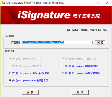 原因是電腦上office不是完整本或者不是簽章軟件所支持的版本,可以安裝完整版office解決,可以安裝03-16版本(注意安裝office2013或者office2016版本需要安裝32位的office版本,第三方提供的簽章軟件尚不支持64位Office版本)。也可以將(圖5)的安裝iSignature Office 簽章版勾掉,不安裝此功能。(這樣會導(dǎo)致Office軟件無法簽章)