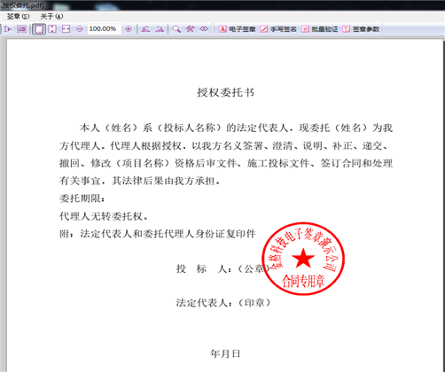 第三步:拖動電子章,把電子章放置到對應(yīng)的位置上。完成簽章后將pdf綁定到投標(biāo)制作工具中。