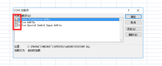把COM加載項(xiàng)中的勾號全部勾掉,點(diǎn)擊確定。