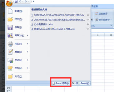 在office中打開excel,選擇Excel選項(xiàng)。